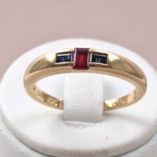 Utropspris: 3 600 krRING MED SAFIR & RUBIN TOT. 0,65CT, GRAVYR, 19 MM