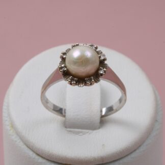 Utropspris: 3 200 krRING MED PÄRLA OCH DIAMANTER TOTALT 0,08CT. 16MM. SVENSKTILLVERKAD
