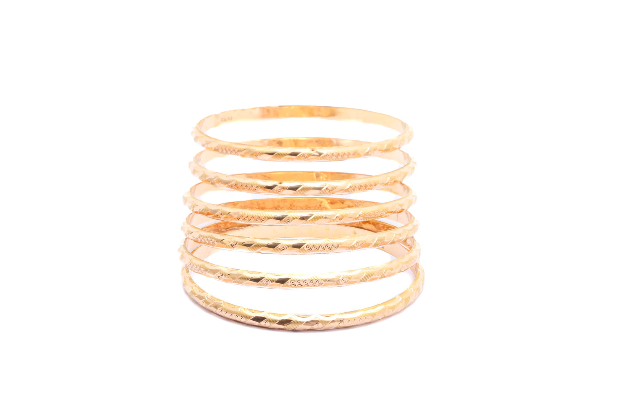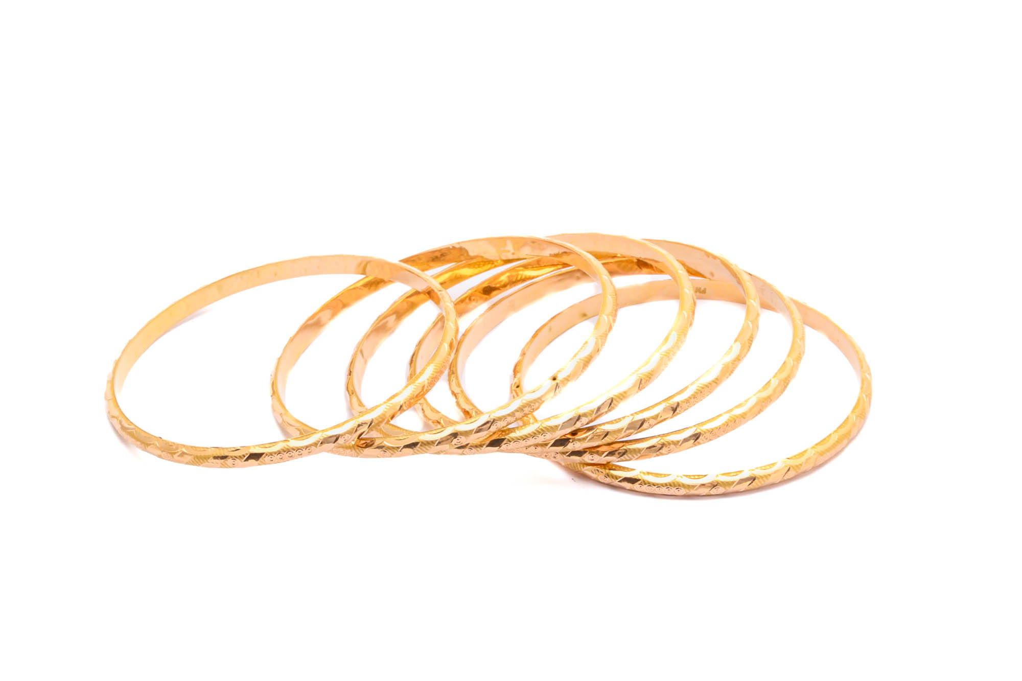 6 MATCHANDE ARMRINGAR STORLEK CA: ø 6,2CM, BREDD: 4MM / 18K ROSÉ & RÖDGULD 22,3G, OBS! IHÅLIGA OCH BUCKLIGA