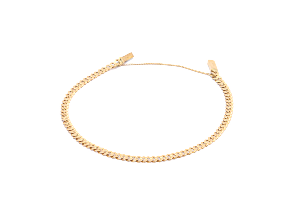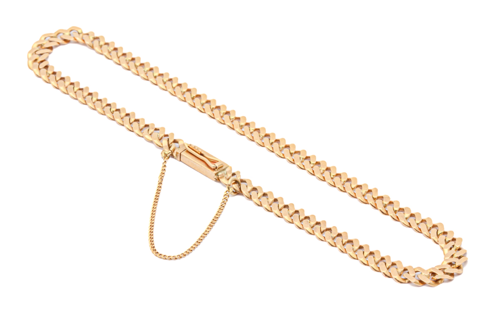 ARMLÄNK PANSAR MED SÄKERHETSKEDJA, LÄNGD CA: 19CM, BREDD: 3,7MM / 18K 4,7G – TILLV. SVERIGE, OBS! NÅGOT OJÄMN PÅ VISSA STÄLLEN