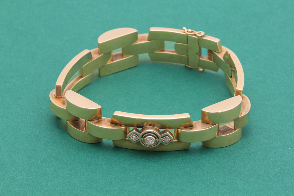 DEFEKT ARMLÄNK MED NAGGADE DIAMANTER, BUCKLOR, REPOR OCH NAGG / 14K 25,8G