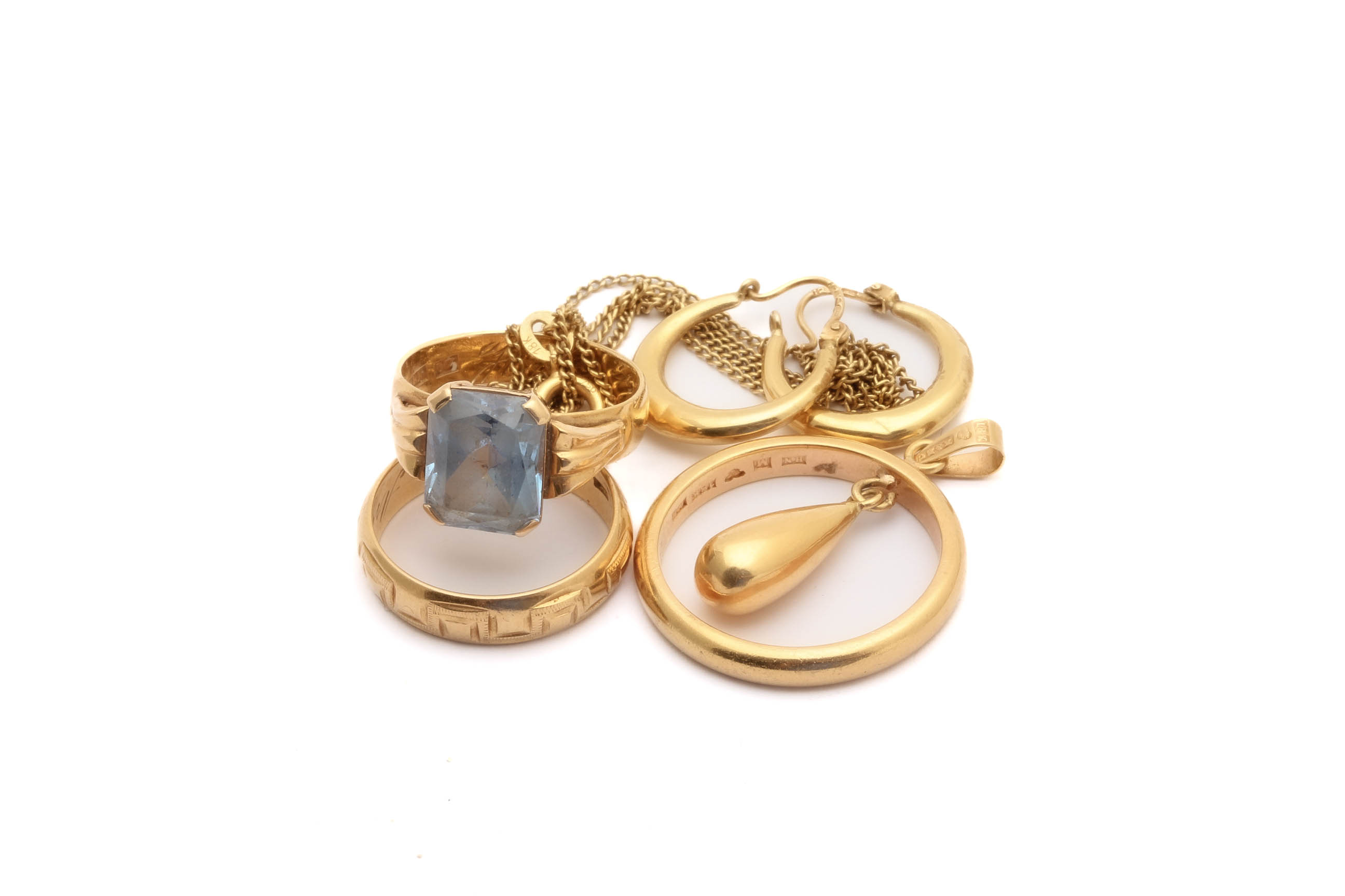 DEFEKTA SMYCKEN MED PRYDNADSSTEN, GRAVYRER, REPOR, NAGG OCH BUCKLOR / 18K 20,4G INKL STEN