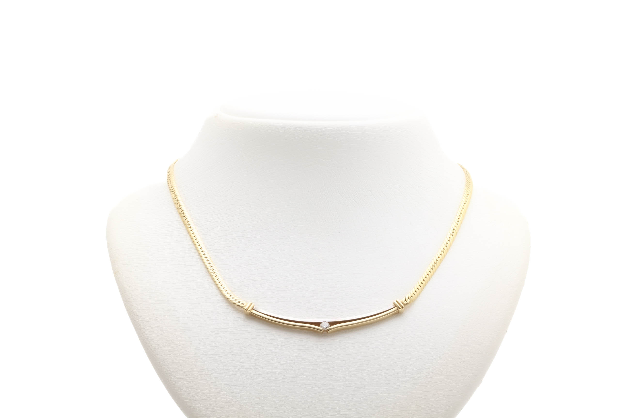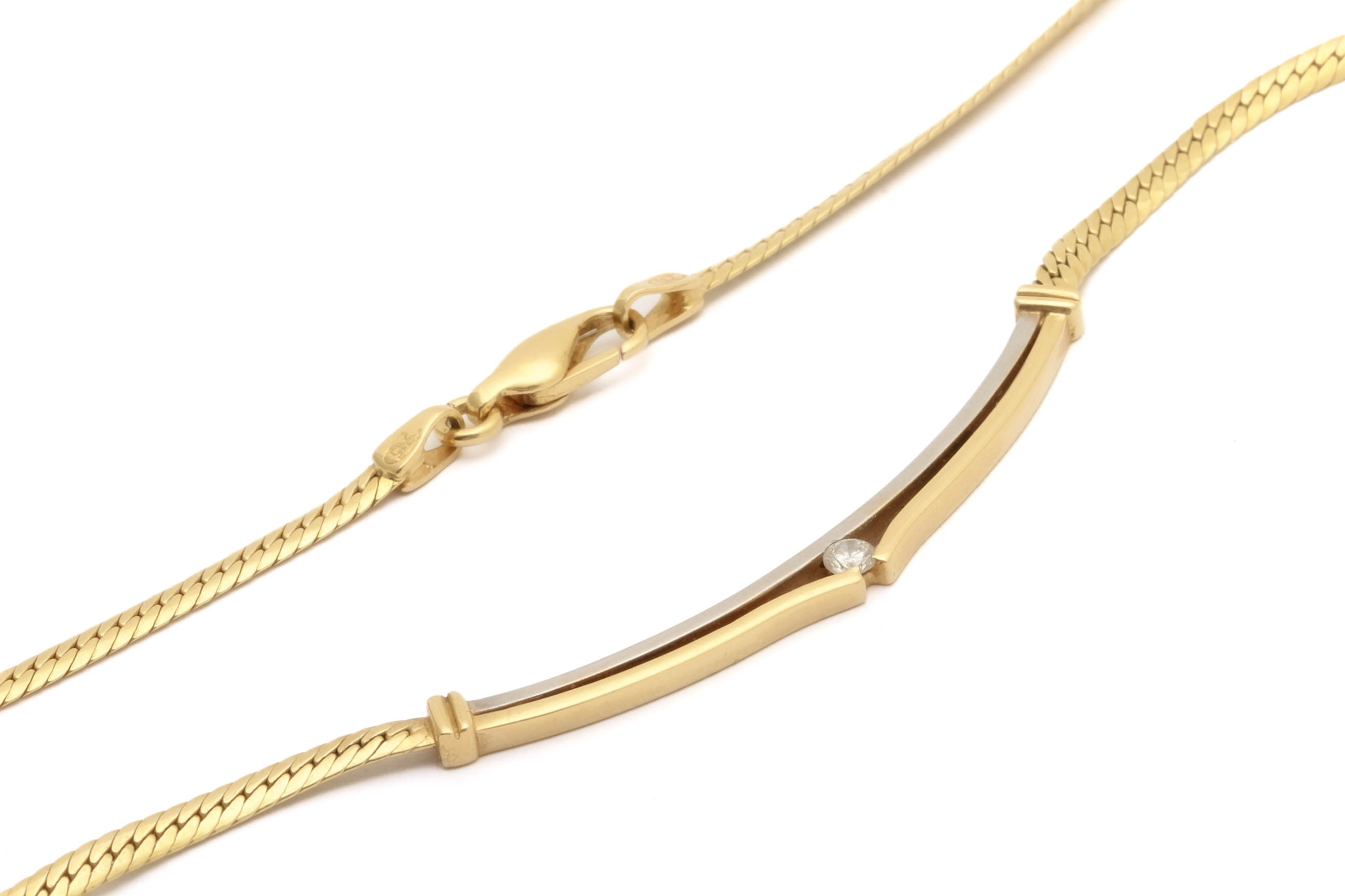 HALSSMYCKE MED DIAMANT CA: 0,15CT, 44CM, BREDD: 3-5MM / 18K RÖD & VITGULD 18,4G – OBS! NÅGOT OJÄMN OCH LÄTT BUCKLIG LÄNK