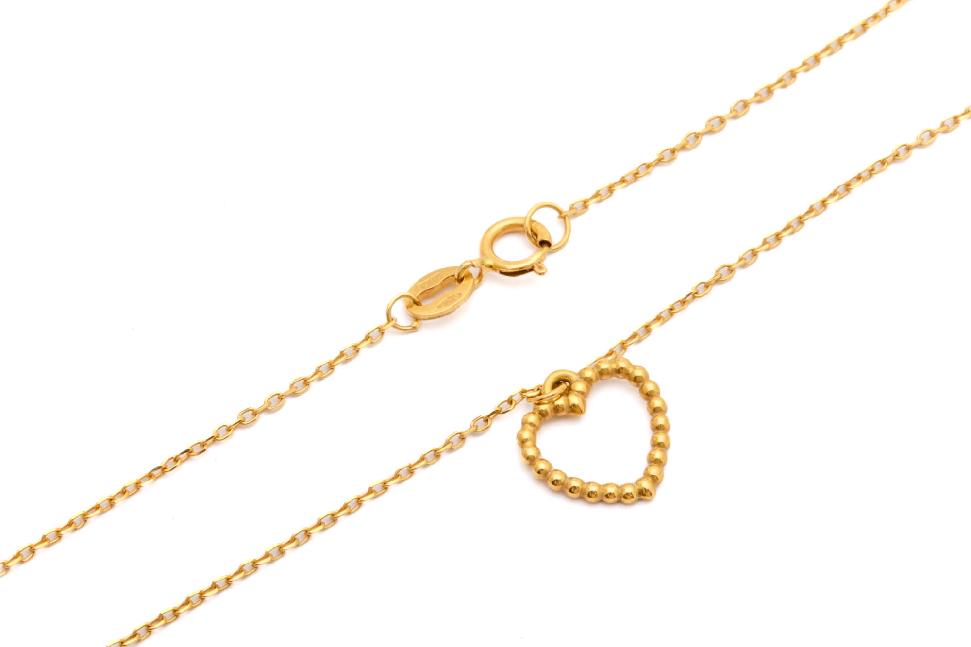 HALSSMYCKE MED HJÄRTA, LÅSBAR I TVÅ LÄNGDER: 42 & 45CM, BREDD: 0,8MM, HJÄRTATS MÅTT: 10x9MM / 18K 1,5G – TILLV. GULDFYNDGRUPPEN