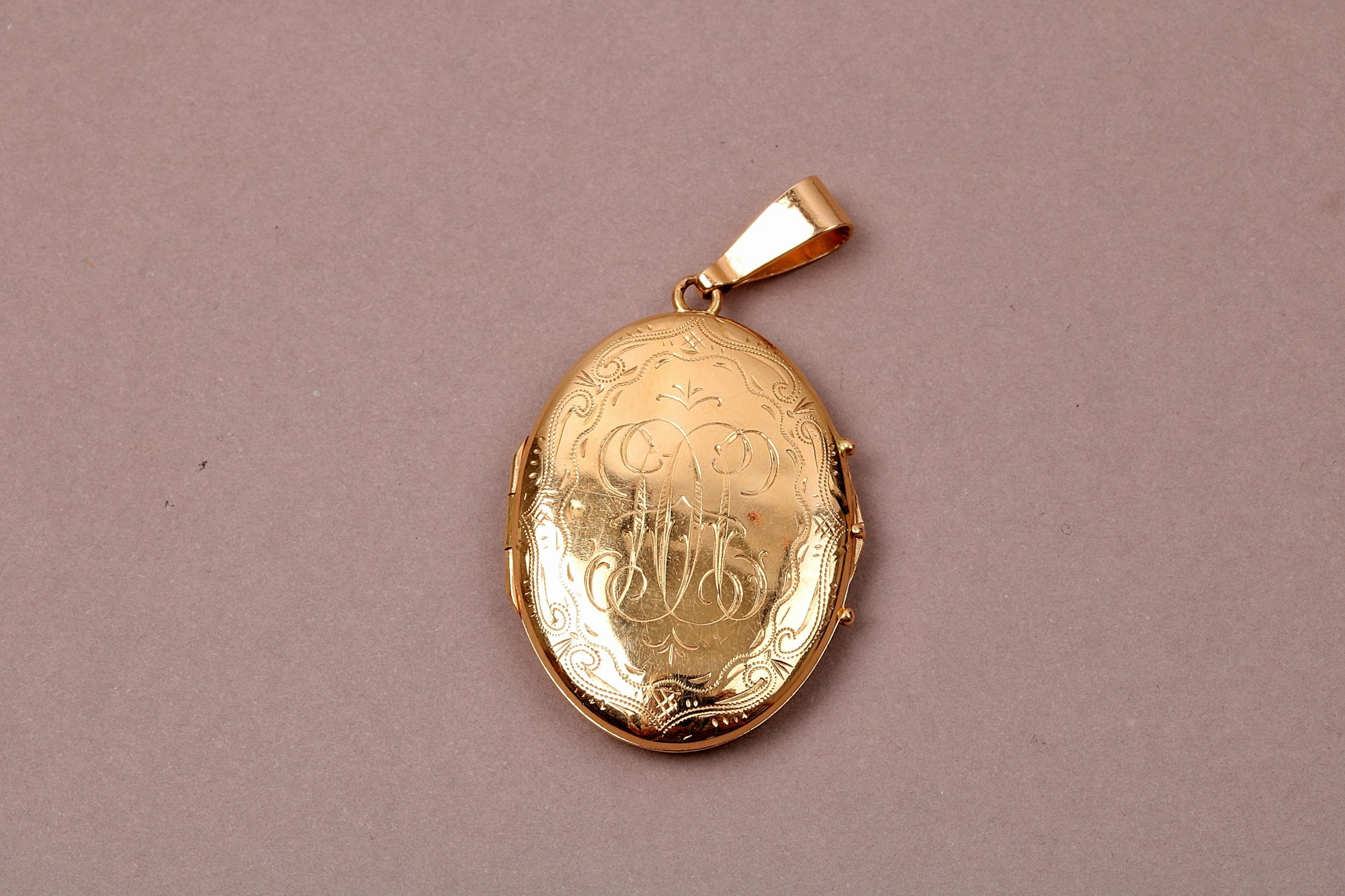 MEDALJONG MED MONOGRAM, BUCKLIG BAKSIDA, L 4,3 CM