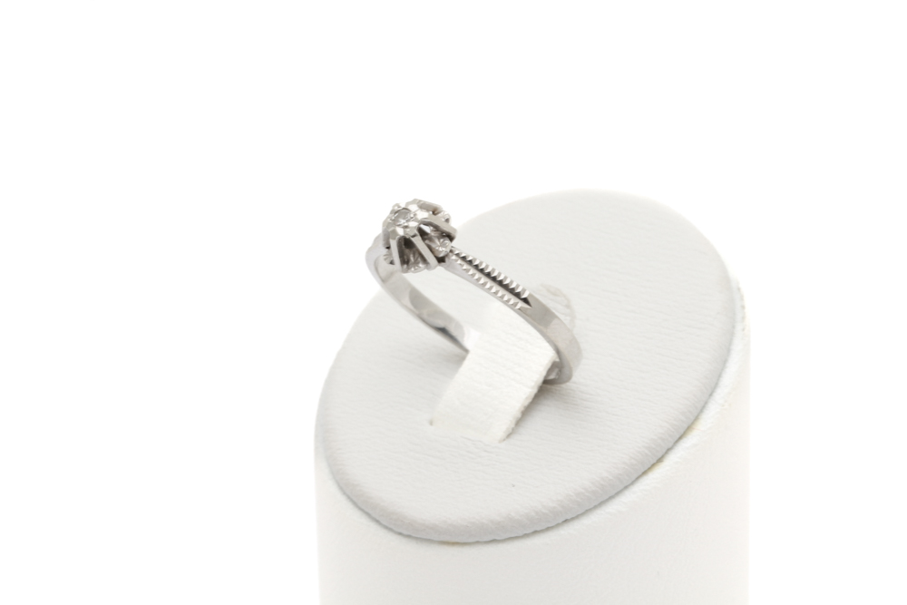RING BLOMMA MED DIAMANT 0,01CT, STORLEK: ø 17MM / 18K VITGULD 1,9G – SVENSK KONTROLLSTÄMPEL