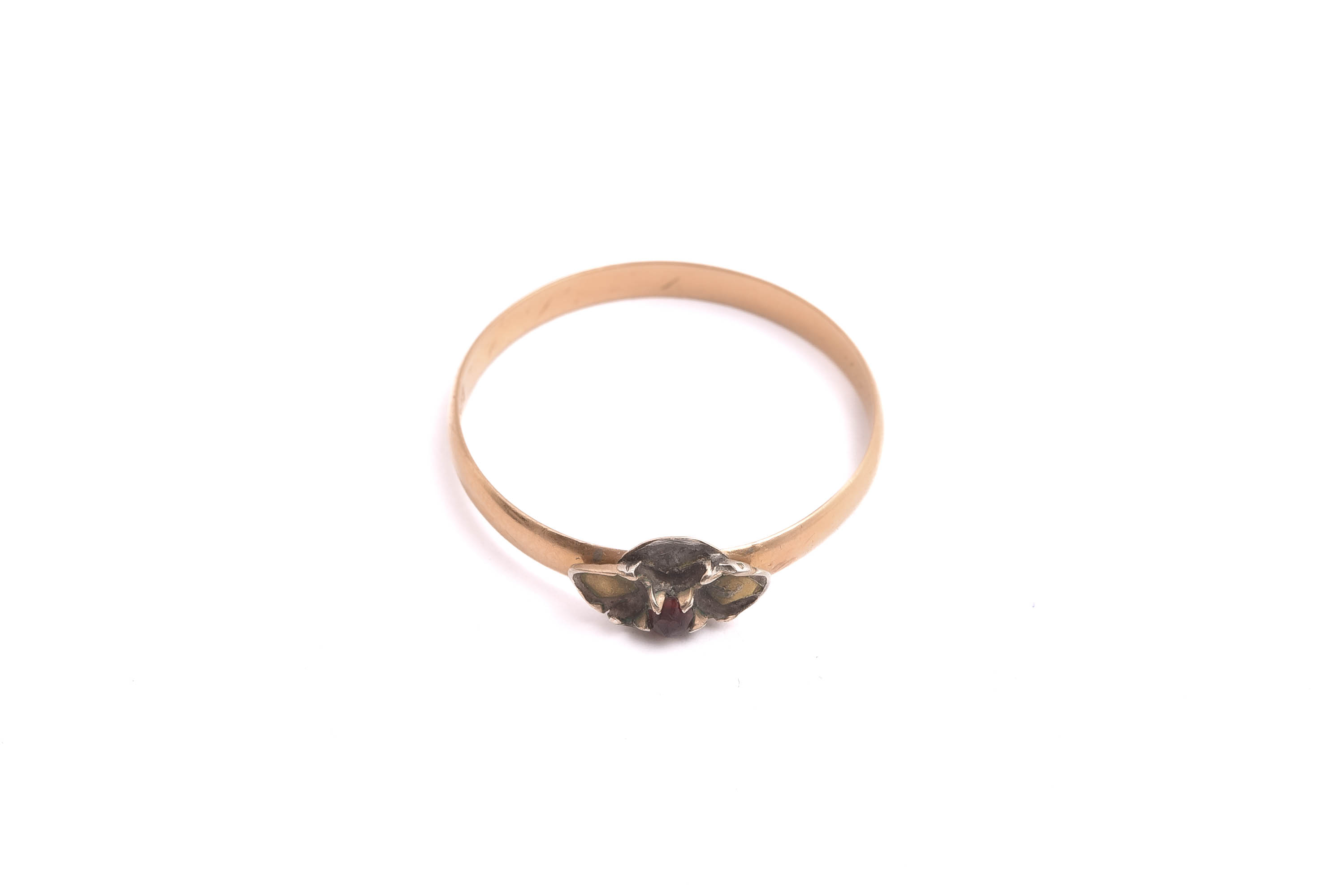 RING (DEFEKT, STENAR SAKNAS) M RÖD STEN (SKENAN 18K, FATTNINGEN I SILVER) TILLV. GÖTEBORG 1880-TALET