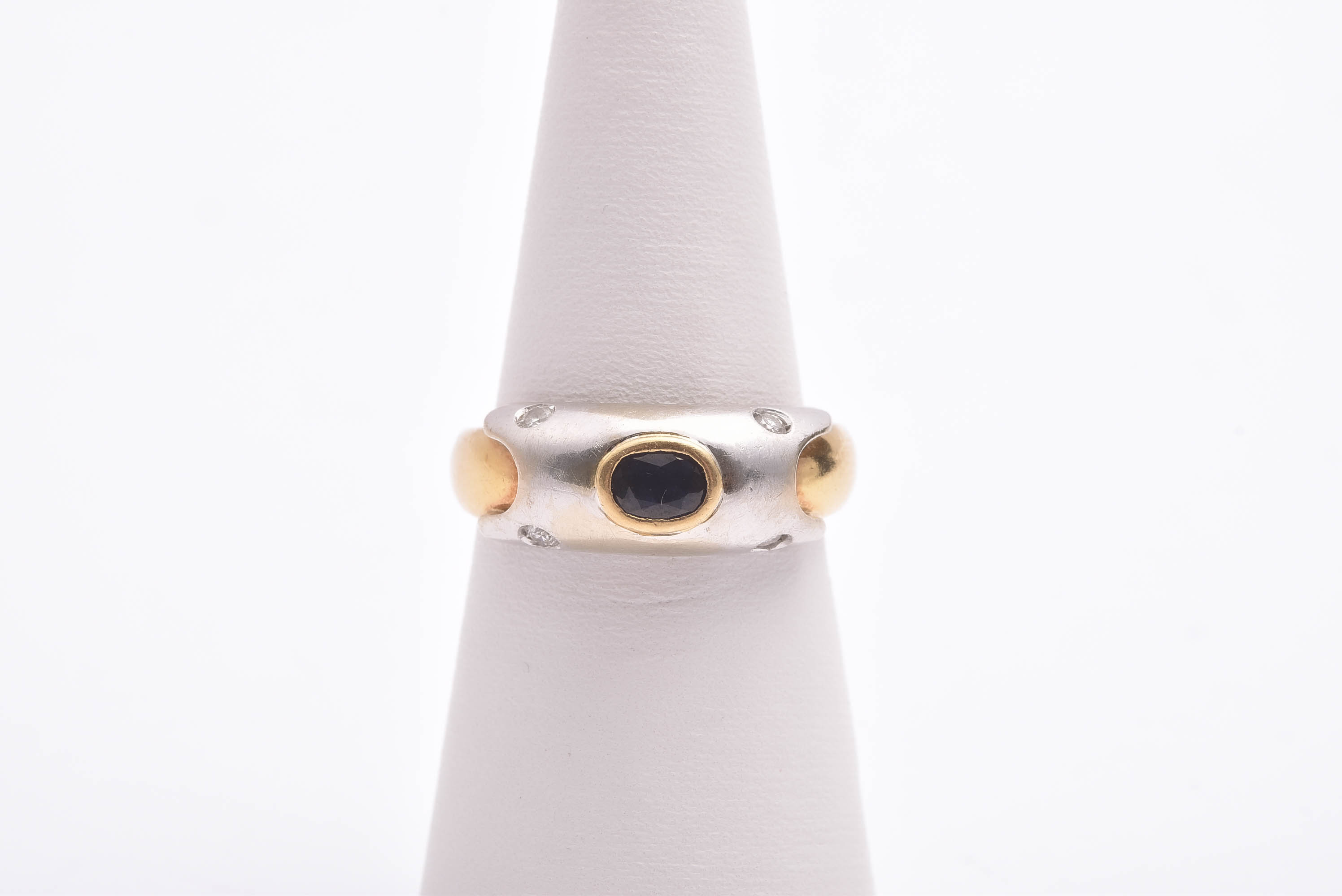 RING M 4 BRILJANT-SLIPADE DIAMANTER TOT. CA 0,08CT & BLÅ SAFIR, 17MM, RÖTT & VITT GULD