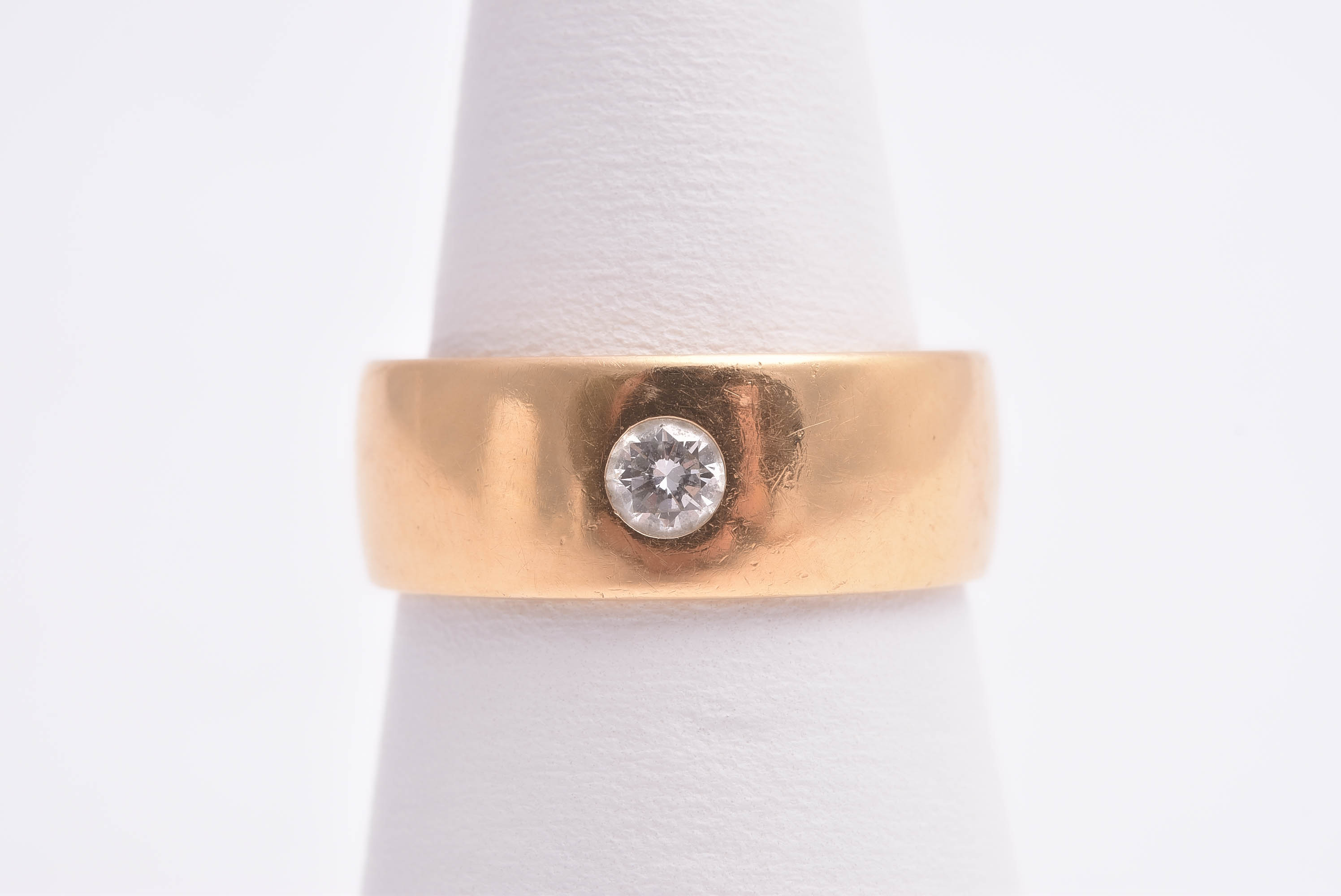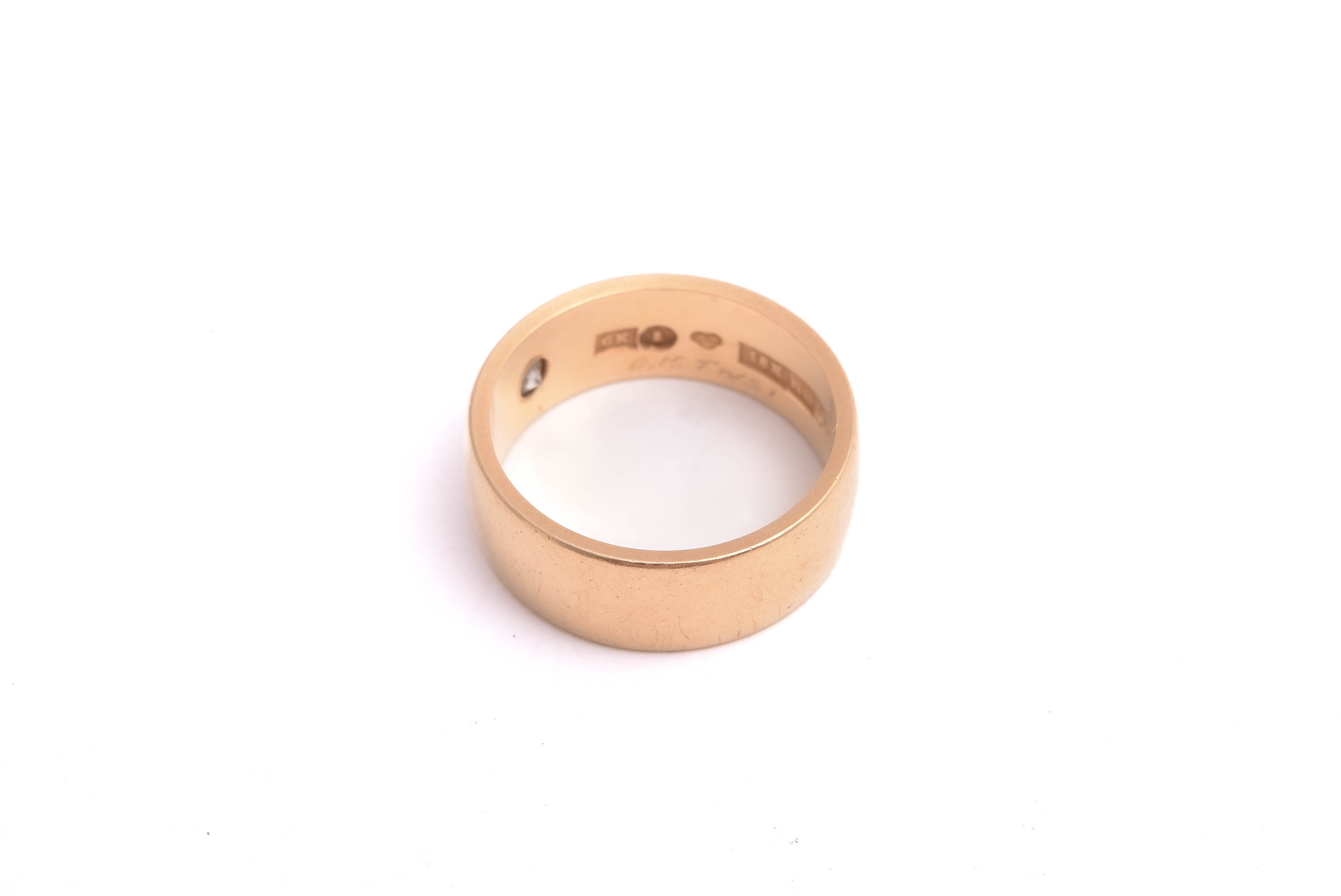 RING M BRILJANT-SLIPAD DIAMANT 0,15CT TOP WESSELTON Si, 16,75MM, BREDD: 6,8MM (GRAVYR I SKENAN) TILLV. G KAPLAN, STOCKHOLM 1967
