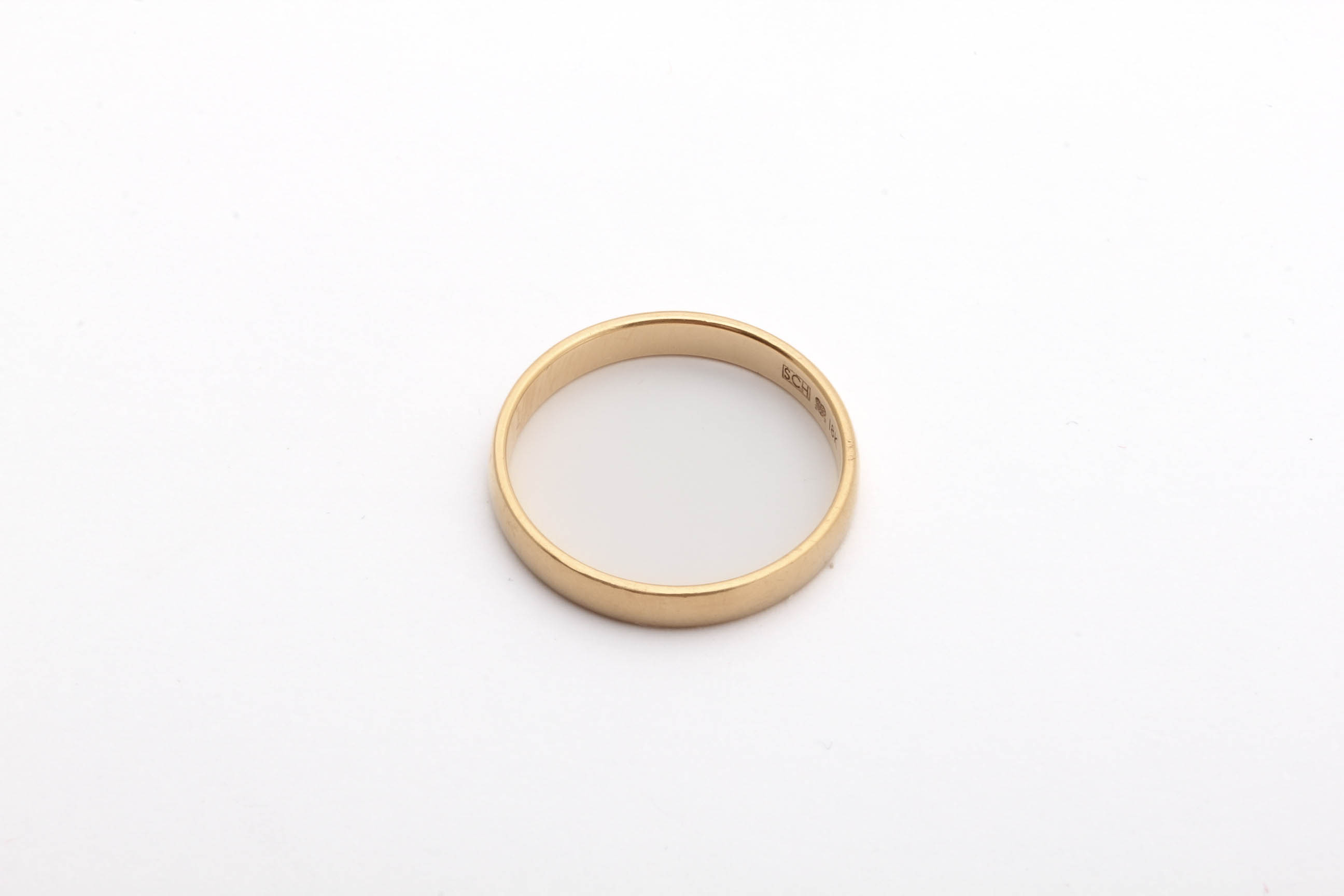 RING SLÄT MED GRAVYR, STORLEK: ø 17,5MM / 18K 2,5G – TILLV. SCHALINS, OBS! NÅGOT REPIG OCH NAGGAD