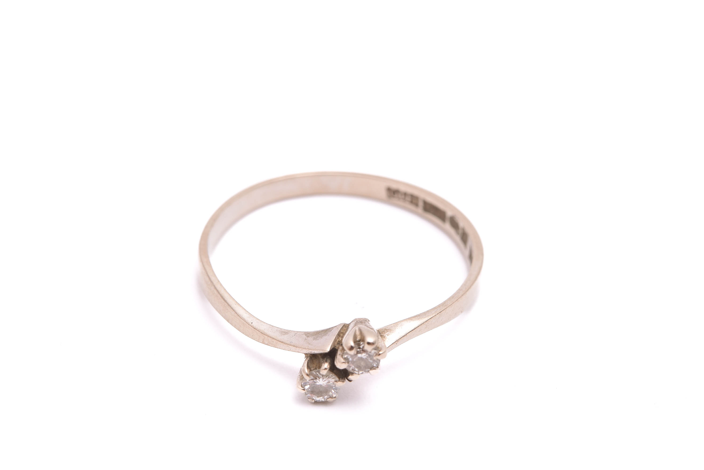 RING VITGULD M 2 BRILJANT-SLIPADE DIAMANTER TOT. 0,08CT, 16,5MM, TILLV. BENGT HALLBERG, KÖPING 1982