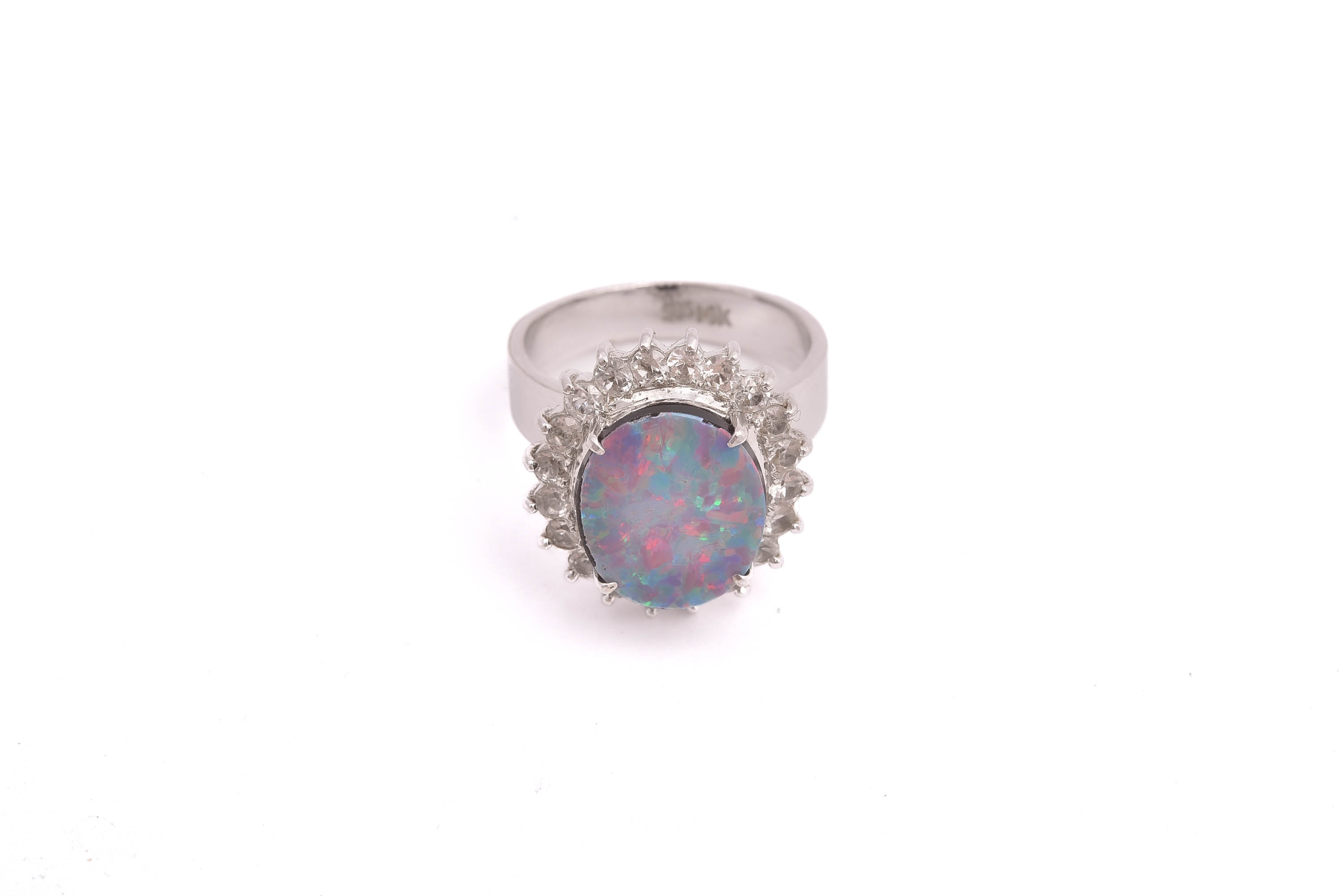 RING VITGULD M OPAL-DUBLETT (NGT NAGG) & VITA SYNTETISKA STENAR, 15,5MM