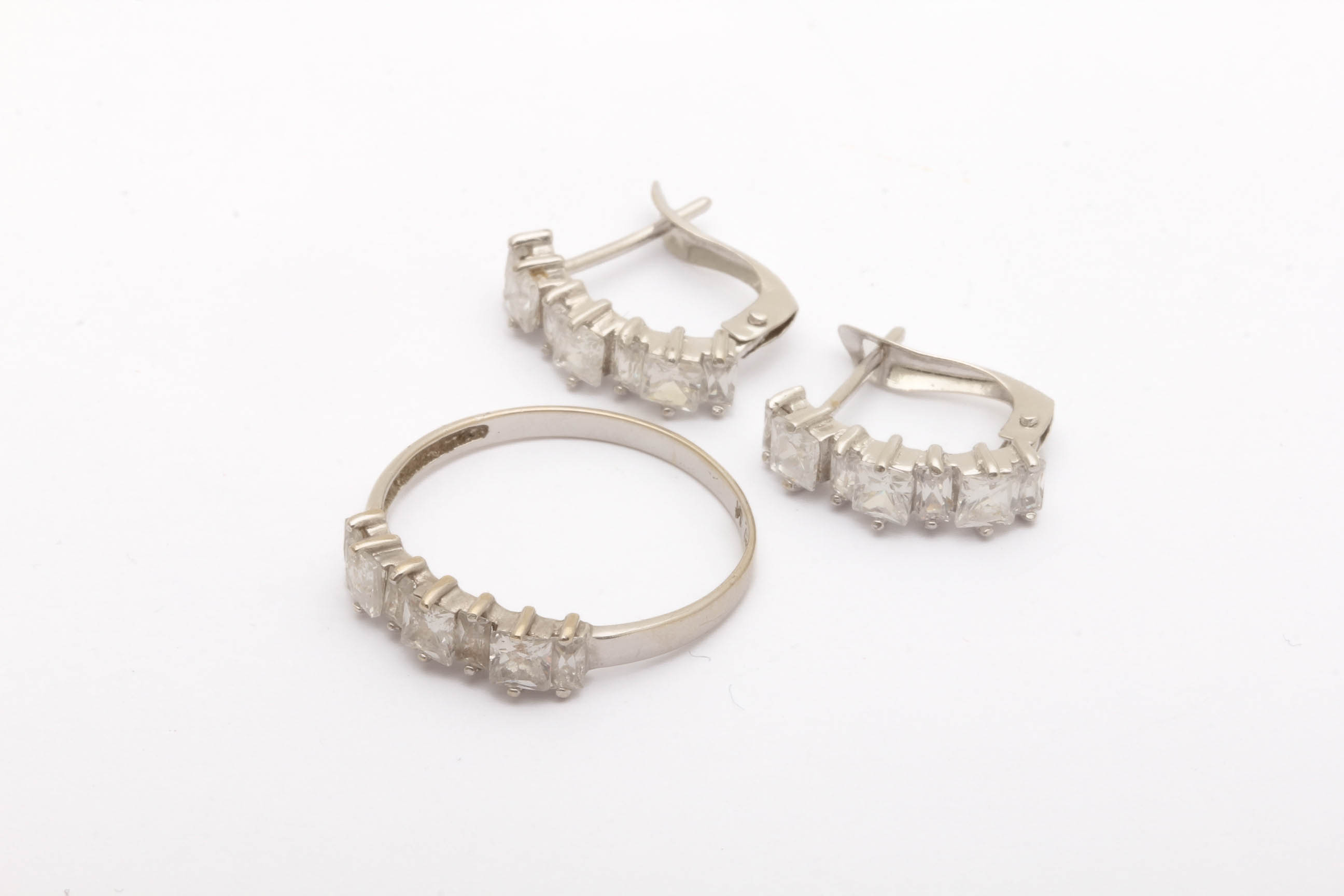 SMYCKESET MED KRISTALLER: RING STORLEK: ø 17,75MM – PAR ÖRHÄNGEN 14,5x4MM / 18K VITGULD 3,7G INKL STENAR