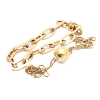 Aktuellt bud: 24 000 krDEFEKTA SMYCKEN ARMLÄNK, HALSKEDJA, HÄNGE, SLITAGE, BUCKLOR / 18K 27,8G