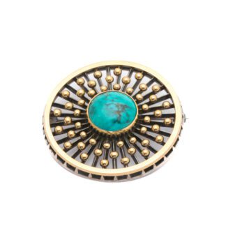 Aktuellt bud: 500 krBROSCH MED TURKOS, MÅTT: ø 44MM / 925 SILVER 22,1G INKL STEN – TILLV. ANDERS HÖGB...