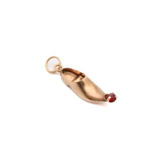 Utropspris: 200 krDEFEKT HÄNGE SKO / SANDAL MED PRYDNADSSTEN, MÅTT: 31x7MM / 14K 0,9G INKL STEN – OB...