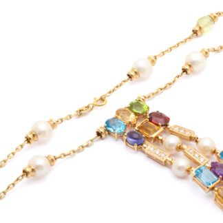 Utropspris: 5 000 krHALSSMYCKE MED PÄRLOR, DIAMANTER OCH PRYDNADSSTENAR, LÄNGD: 41CM, BREDD: 2-8MM / 14K 28,...