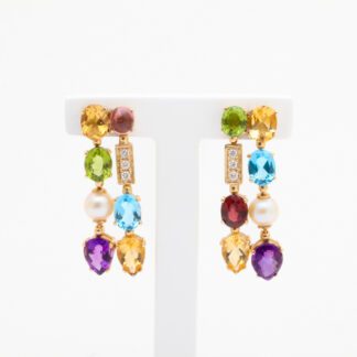Utropspris: 2 000 krPAR ÖRHÄNGEN MED PÄRLOR, DIAMANTER OCH PRYDNADSSTENAR, MÅTT: 37x14MM / 14K 12,6G INKL ...